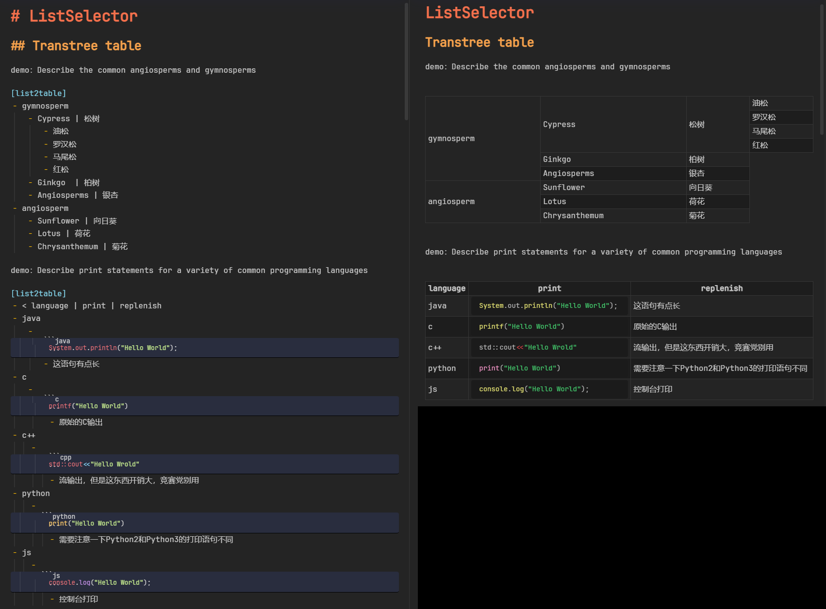 Function:Block conversion、list to table or other tree graph,See the demo sample folder for details