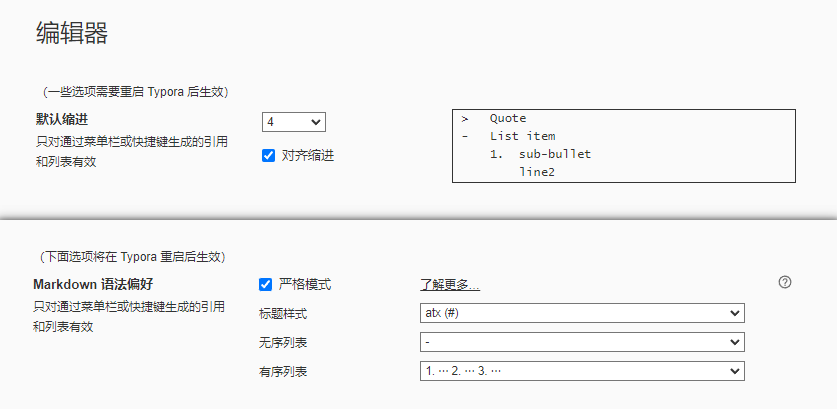 typora设置中,如果开启默认缩进数为4+开启对齐缩进,也是这种