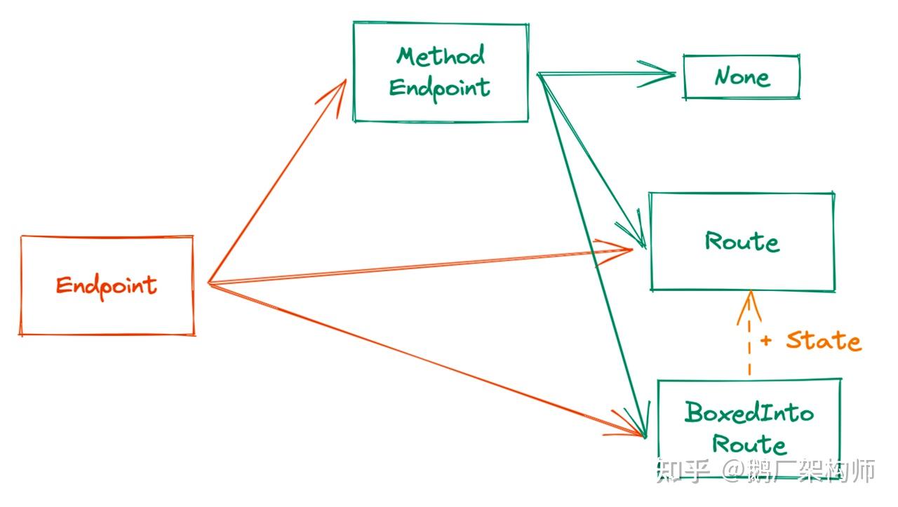 内包含不同 Method 对应的 MethodEndpoint。MethodEndpoint 可能对应 None(该方法上没设置),也可能是先前提到的 Route 或 BoxedIntoRoute。